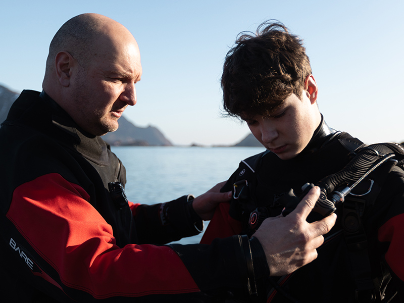 Never dived before? No problem! Our First Time Diver experience is designed for complete beginners who want to explore Lofoten’s breathtaking underwater world in a safe, fun, and unforgettable way. With a small group size (max 4 students per instructor), you’ll receive personalized guidance every step of the way. Your professional instructor will teach you the basics, help you get comfortable in the water, and be right by your side—ready to support you, even holding your hand if needed.