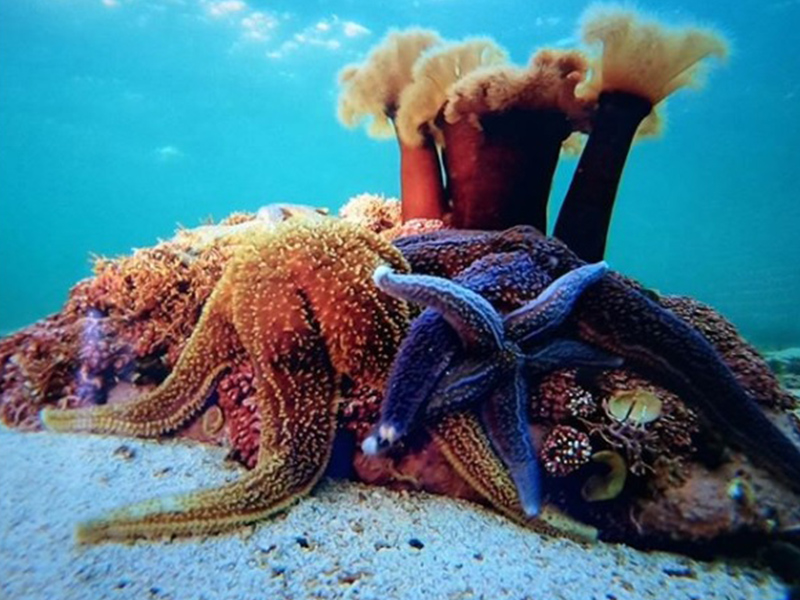 Breathtaking Arctic Marine Life: Swim alongside vibrant kelp forests, starfish, crabs, and schools of fish in crystal-clear waters