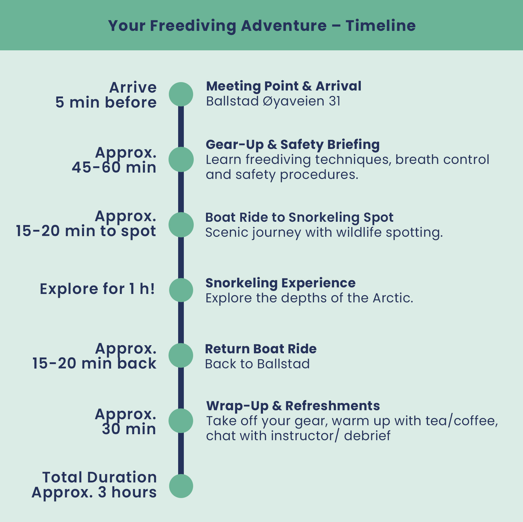 Step into the depths of the Arctic like never before. Our 3-hour freediving tour offers a truly unique way to experience the underwater world, where your breath is your only guide and the vastness of the ocean surrounds you. No tanks, no distractions—just you, your body, and the freedom of the sea.