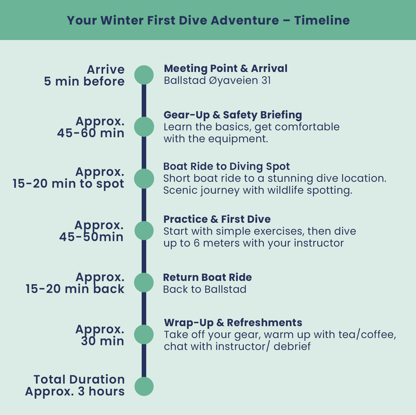 Discover the thrill of scuba diving in a breathtaking Arctic setting with our Winter First Time Diver experience. This unforgettable adventure allows you to explore the crystal-clear waters of Lofoten, where visibility exceeds 40 meters, unveiling a mesmerizing underwater world. Despite the temperatures of 2-5°C, our specialized equipment ensures warmth and comfort, making this an accessible and exhilarating introduction to diving.