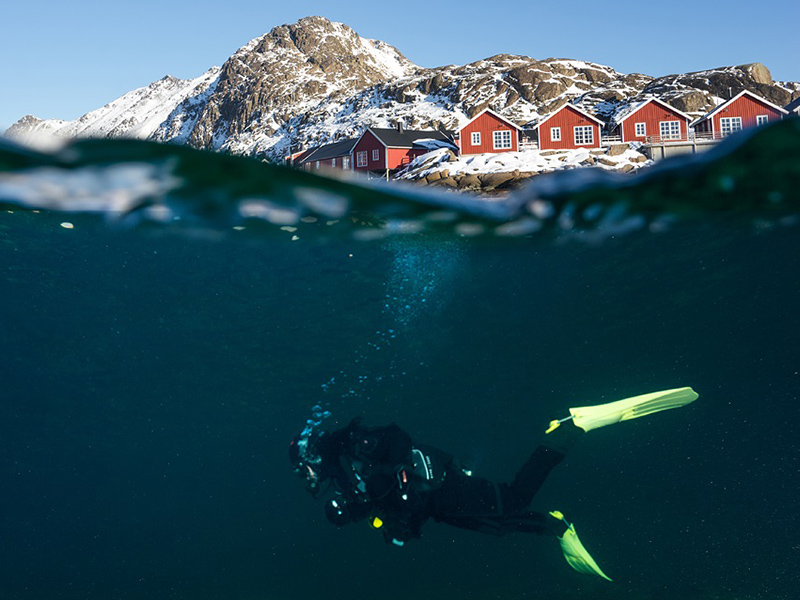 Lofoten’s waters are calling! Despite the cold temperatures, winter diving in Lofoten is widely regarded as an unforgettable and rewarding challenge, leaving a lasting impression as one of the most remarkable Arctic experiences.
